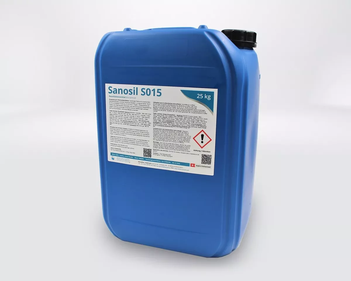 Contrairement au Sanosil Super 25, plus concentré, S015 n’est pas classé comme produit dangereux et ne nécessite aucune précaution particulière de stockage ou de transport.